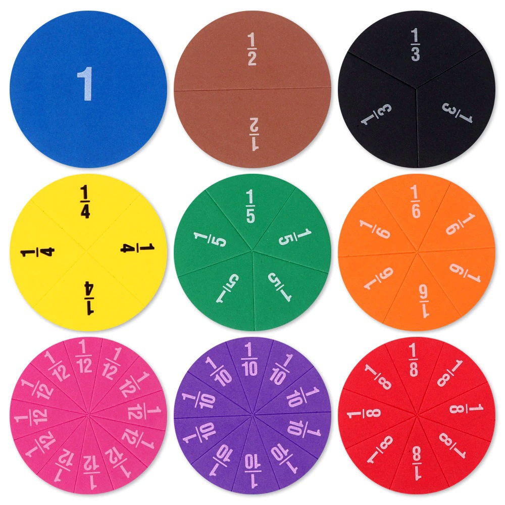 - кругла головоломка, поділена на: 1, 1/2, 1/3, 1/4, 1/5, 1/6, 1/8, 1/10 і 1/12 ,