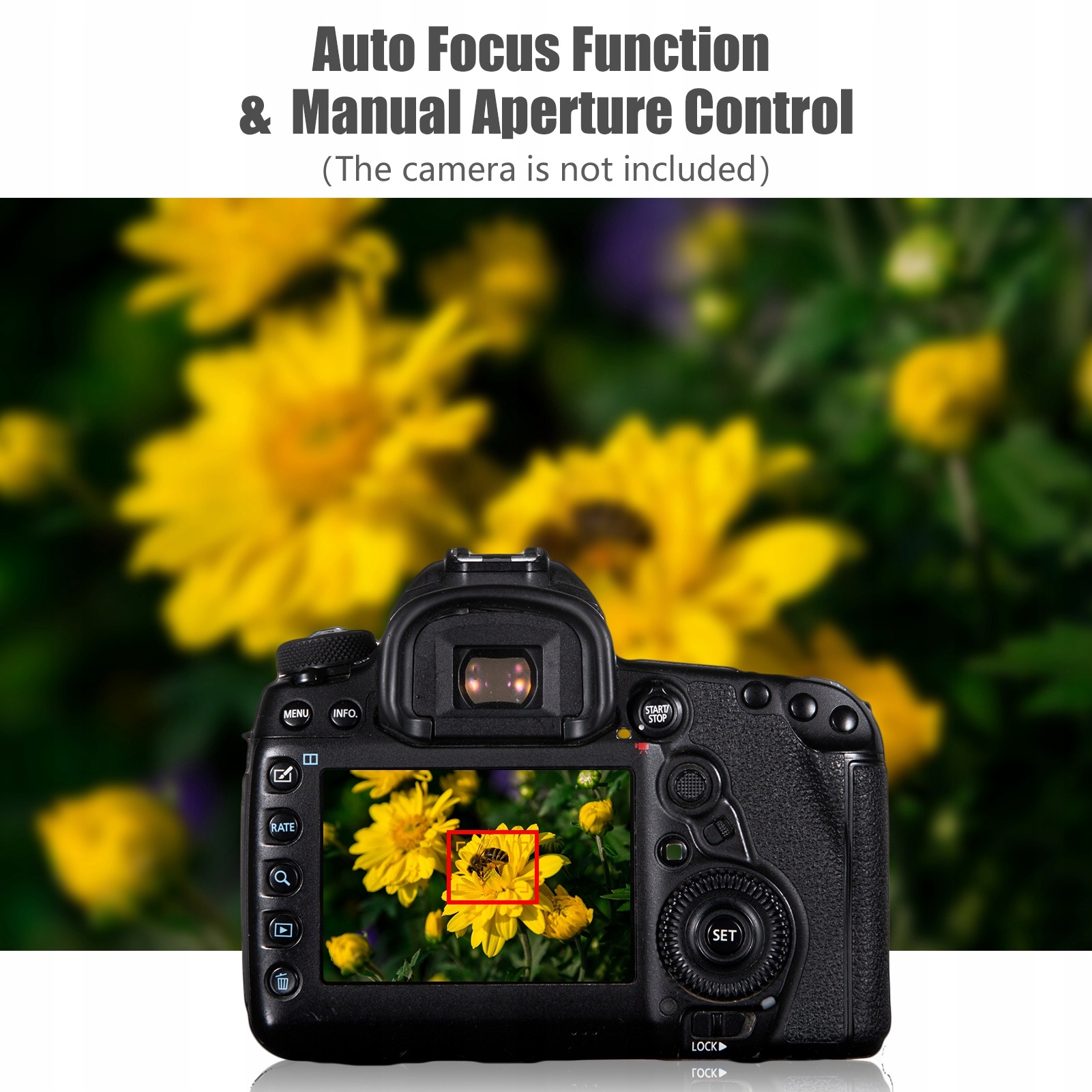 3. [Функція автофокусування] Завдяки металевому кріпленню та металевим контактам фокусування відбувається плавніше та швидше, а зображення стає чіткішим, що ідеально підходить для макрозйомки.