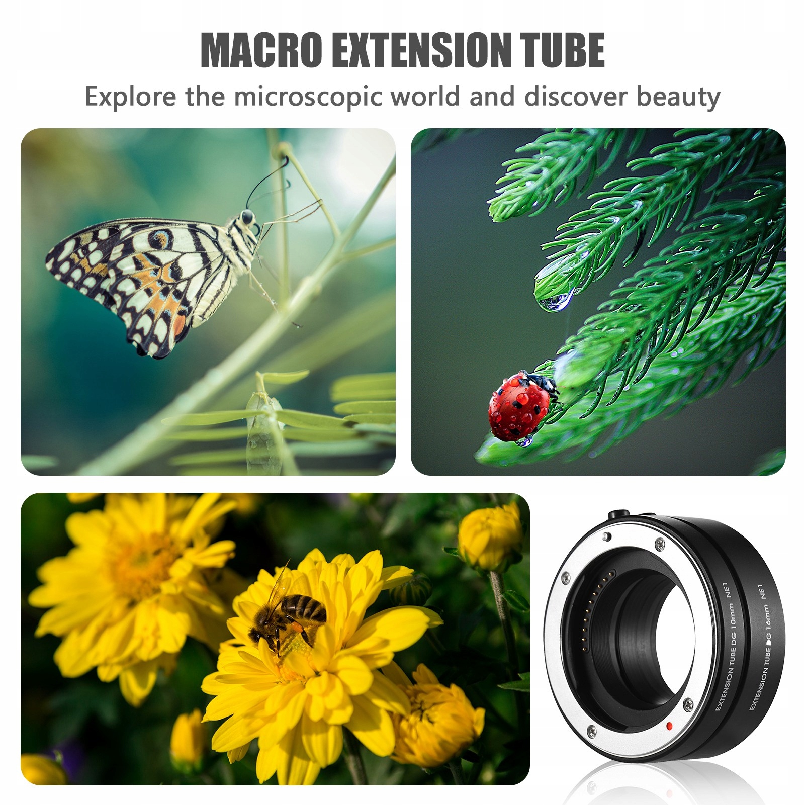 2. [Багаторазові режими] 10-мм або 16-мм макроподовжувальну трубку можна використовувати окремо, також підходить комбінація 10 мм + 16 мм, що забезпечує різне збільшення великим планом і візуальні ефекти.