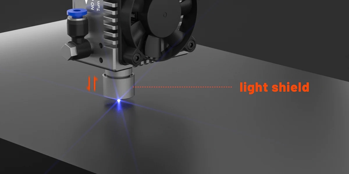 Оригінальний лазерний модуль E80, розроблений для уникнення затінення, якщо прийнято щодо системи розсіювання тепла. Традиційний лазерний модуль з червоного акрилу може бути універсальним, тому загальна конструкція виглядає непривабливо і громіздко. Новий відтінок E80 покращує його зовнішній вигляд, роблячи загальний вигляд досконалішим. У технології різання звичайних конструкційних матеріалів затінення може блокувати потік світла та використовувати його у відкритому середовищі.