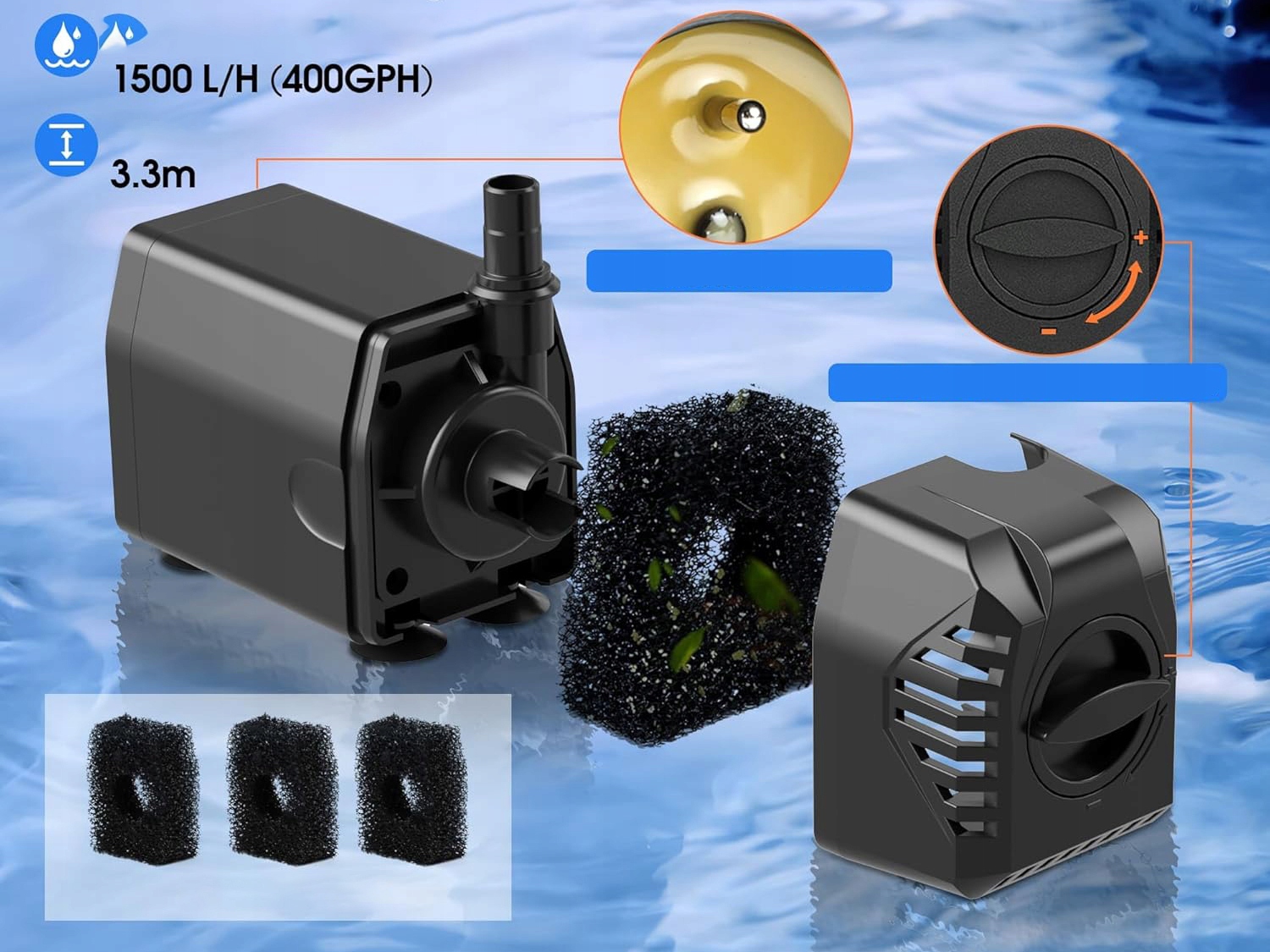Потужність насоса 1600 л/год (420 GPH) забезпечує ефективну циркуляцію води, що запобігає застою та благотворно впливає на здоров'я водойм. Крім того, насос оснащений інноваційними технологічними рішеннями, такими як герметичний мідний вал і губчастий фільтр, які ефективно захищають від забруднень, таких як листя або гравій. Варто пам'ятати, що регулярне очищення фільтруючого елемента, хоча б раз на тиждень, значно продовжує термін служби всього пристрою, що робить його більш ефективним і економічним в довгостроковій перспективі.