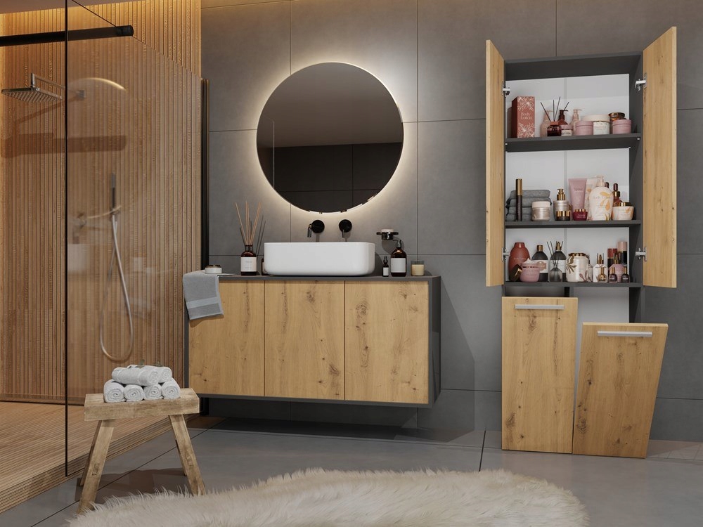 NEL ПОЛИЦЯ ДЛЯ ВАННОЇ КОМНАТИ 1 КОШИК, ДВЕРЦІ ДОВГІ АНТРАЦИТ / ДУБ ARTISAN