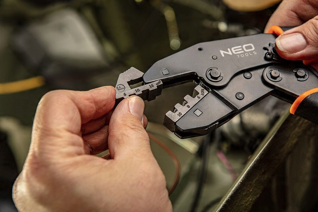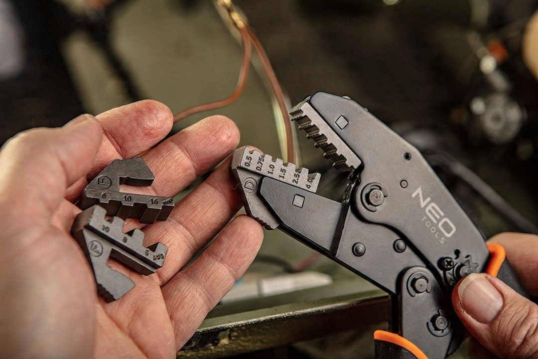 Крімпер Neo для наконечників 0,5 - 16 мм2 - інструмент, корисний для всіх монтажних і монтажних робіт. Використовується для опресування тонкостінних неізольованих наконечників діаметром від 0,5 до 16 мм2. Головки кусачок виготовлені з високоякісної хромомолібденової сталі (CrMo) з твердістю 45 HRC, що гарантує міцне захоплення і високу стійкість до пошкоджень. Кримпер Neo Tools для наконечників 0,5 -16 мм2 також оснащений двоматеріальною рукояткою ергономічної форми, яка забезпечує міцний хват і забезпечує високий комфорт роботи. Кліщі для обтиску ідеально підходять для професійних електриків і любителів домашнього майстрування. Найвища якість виготовлення, міцність і надійність в експлуатації підтверджені сертифікатом TŰV і 25-річною гарантією від виробника, що неодмінно оцінять найвибагливіші користувачі. Просте, інтуїтивно зрозуміле керування робить кліщі придатними для всіх робочих умов, де потрібна точність і точність затиску.