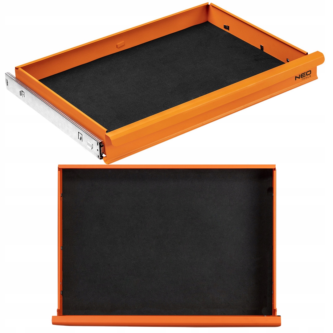 Маленький ящик Neo (посилання 84-084) з внутрішніми розмірами 56 x 39 x 5,5 см-одним із елементів системи Neo Custom Pro. Ящик оснащений широкими стабільними кульковими путівниками, що забезпечують рідкі сови та велику потужність 25 кг. Сталева конструкція продукту забезпечує тривалий термін експлуатації. Ящик оснащений ручкою, яка полегшує витягування. Всередині ящика є вставка з пінопласту, яка захищає лак ящика та інструменти проти подряпин. Продукт оснащений замком, який заважає автоматично відкриватися під час роботи чи транспортування. Крім того, ящик сумісний з усіма вставками інструментів Neo. Використовуючи різні елементи, включені в систему Neo Custom Pro, ви отримуєте можливість скласти своє власне, ідеальне місце для зберігання інструментів. Бренд NEO відповідає очікуванням професіоналів.