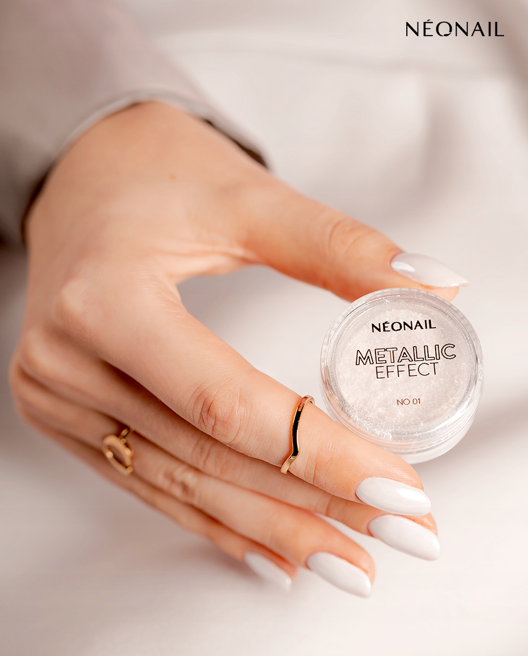 Подібний продукт NEONAIL ще ніколи не пропонував, і він дозволить вам досягти багатьох фантастичних ефектів на ваших нігтях. Все тому, що він буде виглядати зовсім по-іншому, якщо наносити його на різні відтінки гібридних лаків. Це білий лак для нігтів Metallic Effect 01 з красивим металевим покриттям.