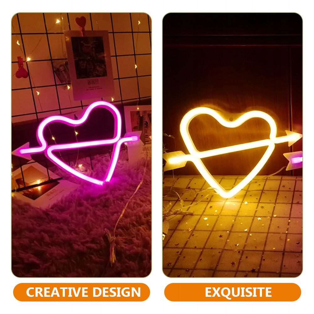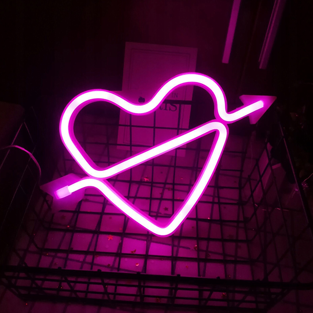 Ця неонова лампа виготовлена з чудового матеріалу, який може бути міцним і шикарним, креативним і привабливим із дизайном у формі серця та стріли, вона не нагрівається після тривалого використання, ідеально підходить для додавання святкової атмосфери. супутник для вас вночі.