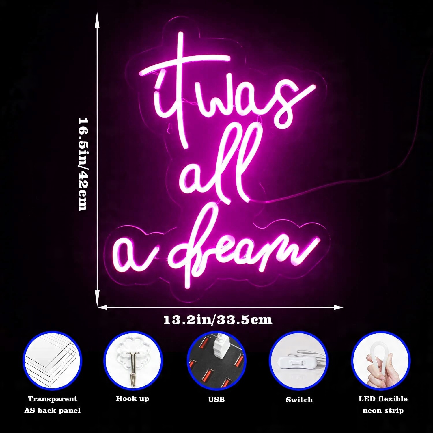 Неоновий неоновий напис IT ALL A DREAM 40 x 30 см