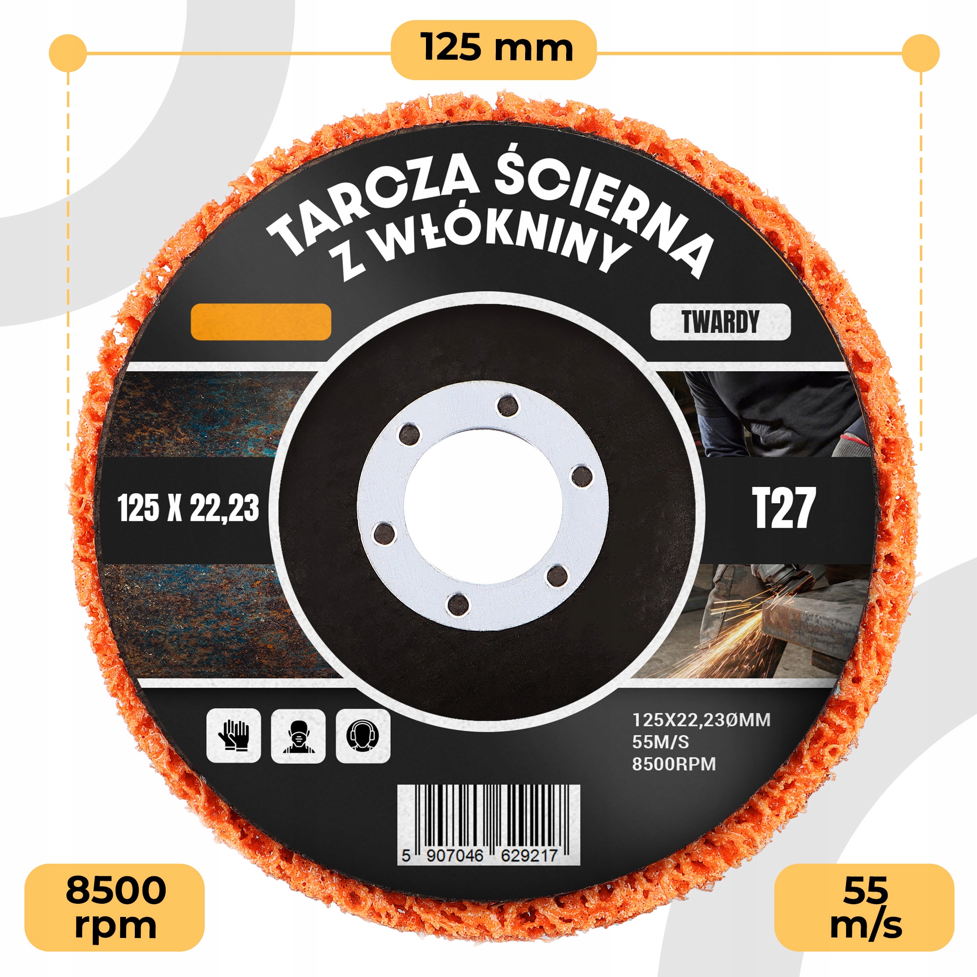 Нетканий абразивний диск 125 мм × 22,23 мм T27 помаранчевий, твердий