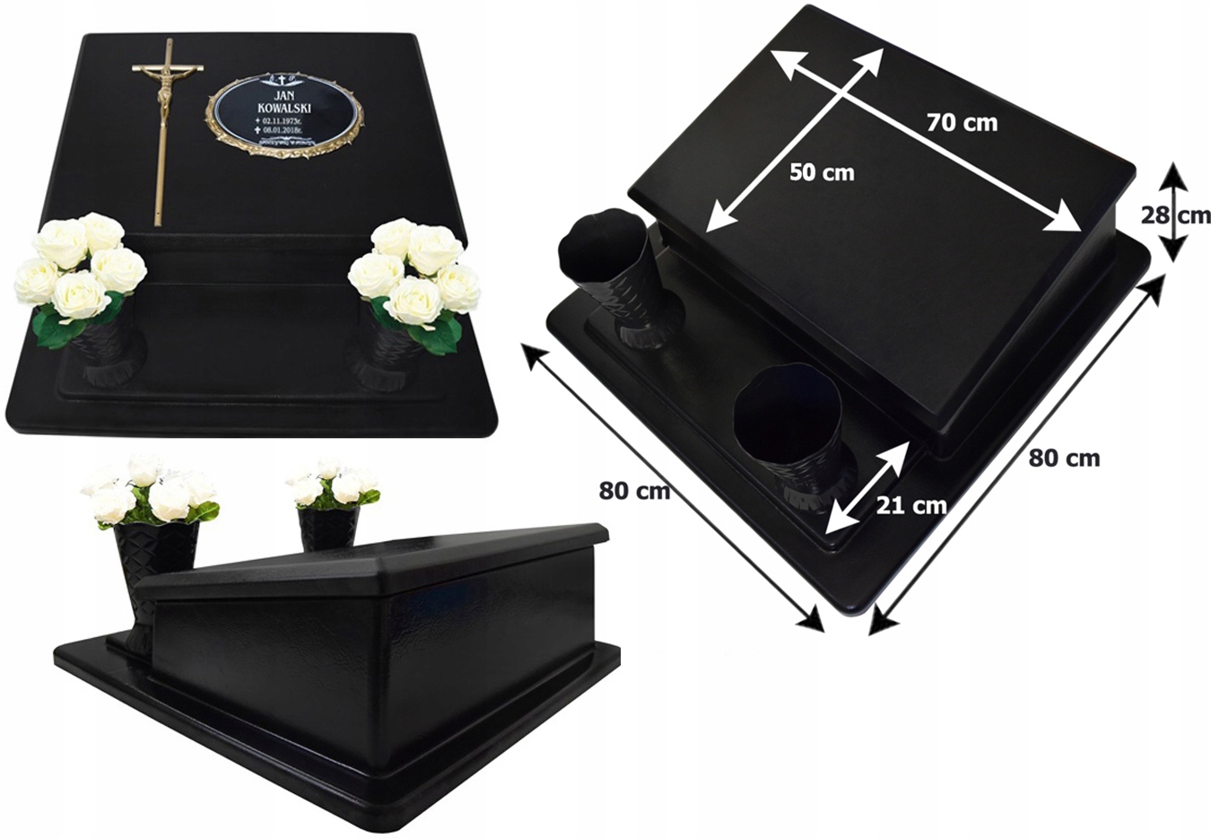 Пластиковий цвинтарний пам'ятник виготовлений з модифікованого пластику (ABS), що ідеально імітує фактуру шкіри.