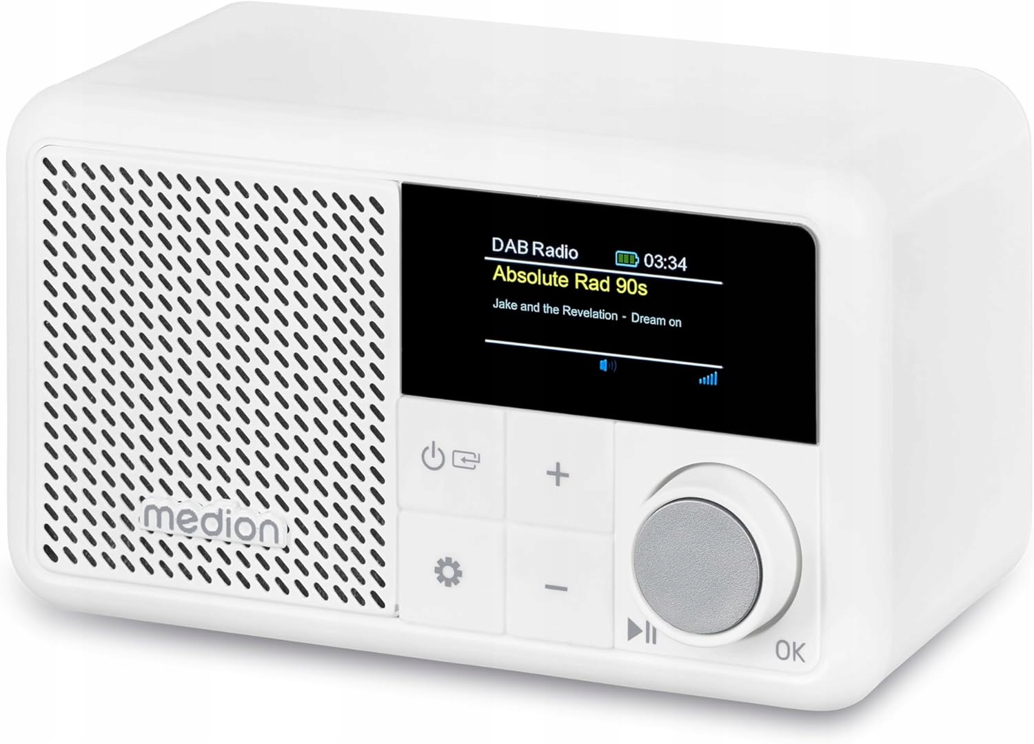 з радіо Dab+ Medion S66822 Ваше повсякденне життя стане ще більш барвистим! Ви можете вибрати між DAB+ та FM - просто збережіть улюблені станції та насолоджуйтесь широким спектром програм. Якщо ви віддаєте перевагу слухати власний список відтворення, просто підключіть смартфон або планшет через Bluetooth. Кольоровий дисплей 1.4 забезпечує, що ви ніколи не втратите контроль над тим, що відбувається. Завдяки дуже компактному дизайну радіо ідеально вписується в будь -який стіл і навіть на полиці. Завдяки захисту від бризки, IPX1 ідеально підходить для кухні, ванної кімнати чи подорожей. Завдяки вбудованому акумулятору з робочим часом до 6,5 годин, він не буде вивантажити так швидко, що робить їх ідеальним супутником - будь то сніданок чи подорожі.