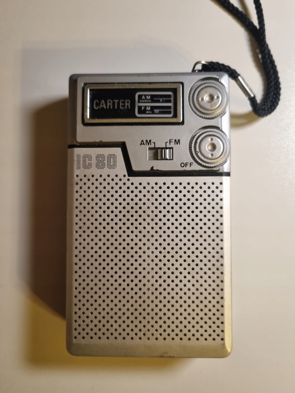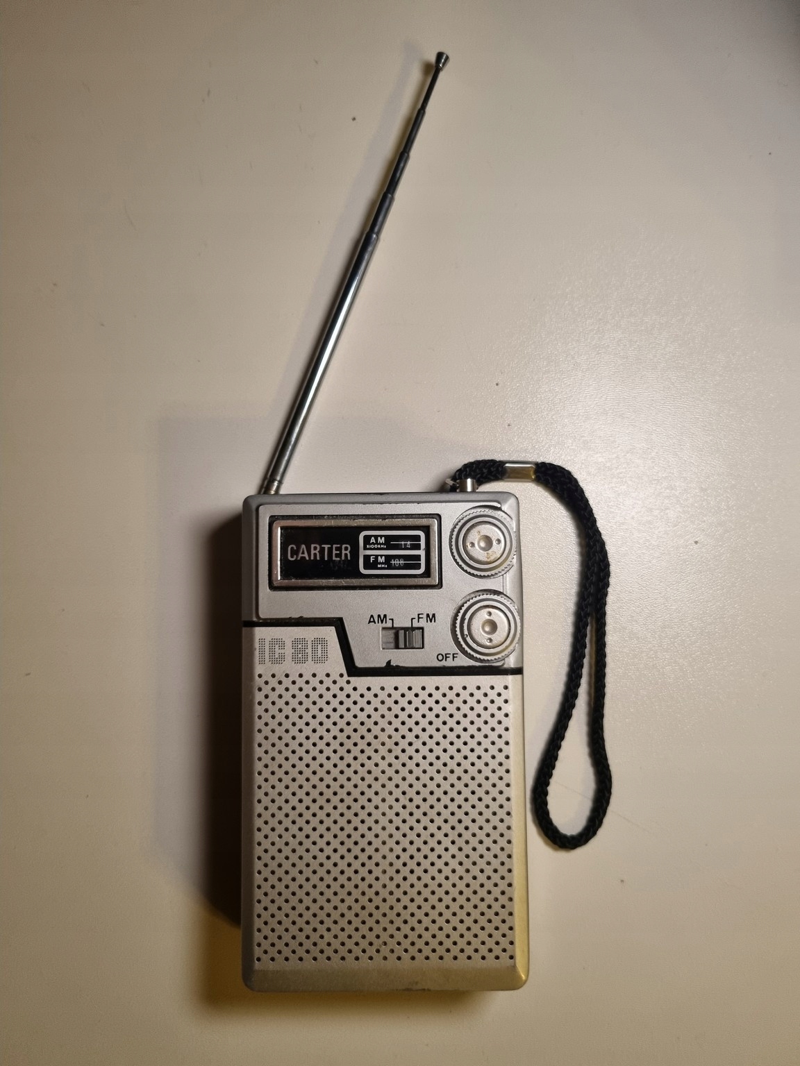 Невеликий старий ретро -радіо Carter IC80, ефективний, має ряд FM.