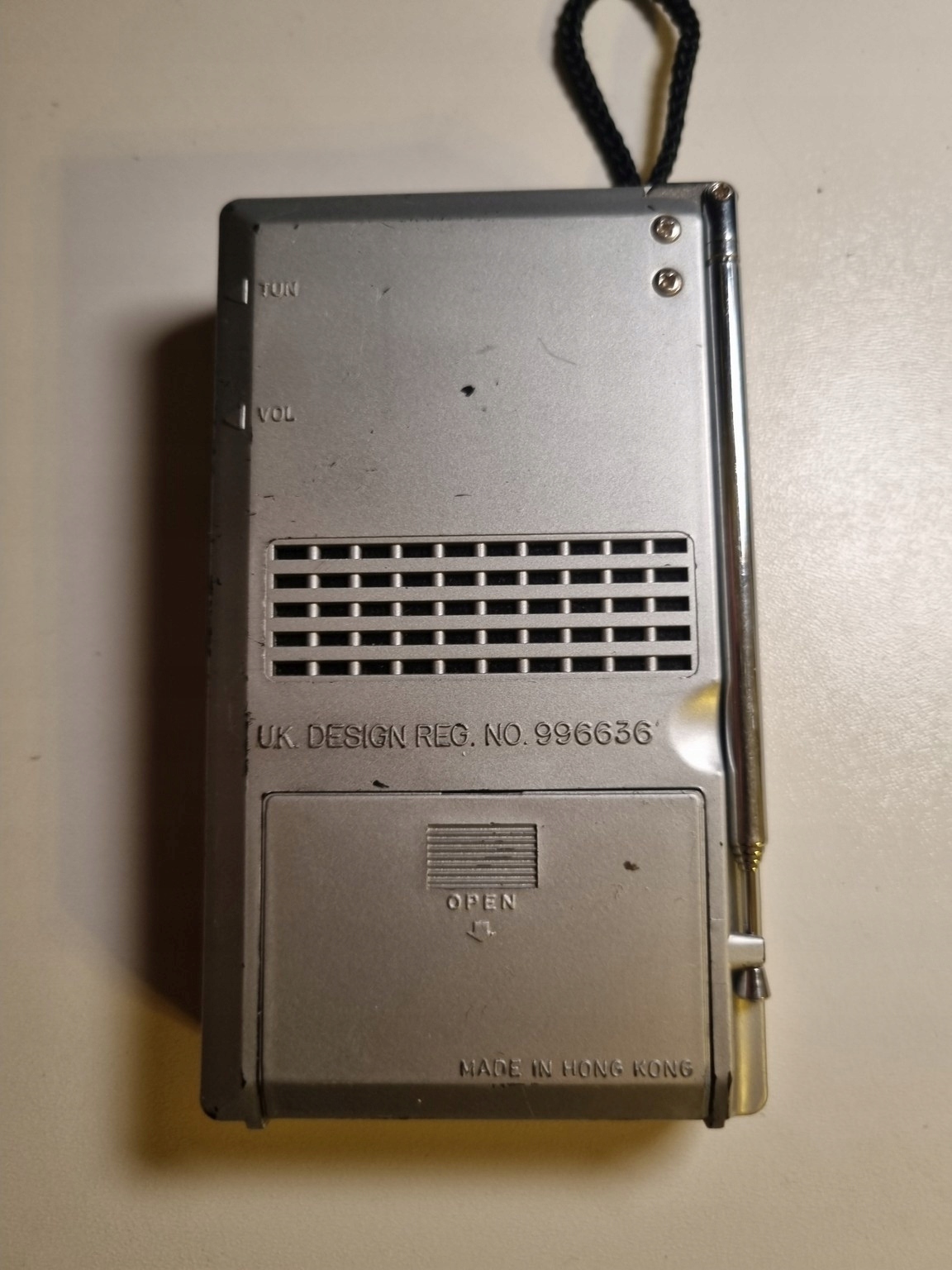 Маленький старий ретро -радіо Carter IC80, ефективний, має ряд FM.
