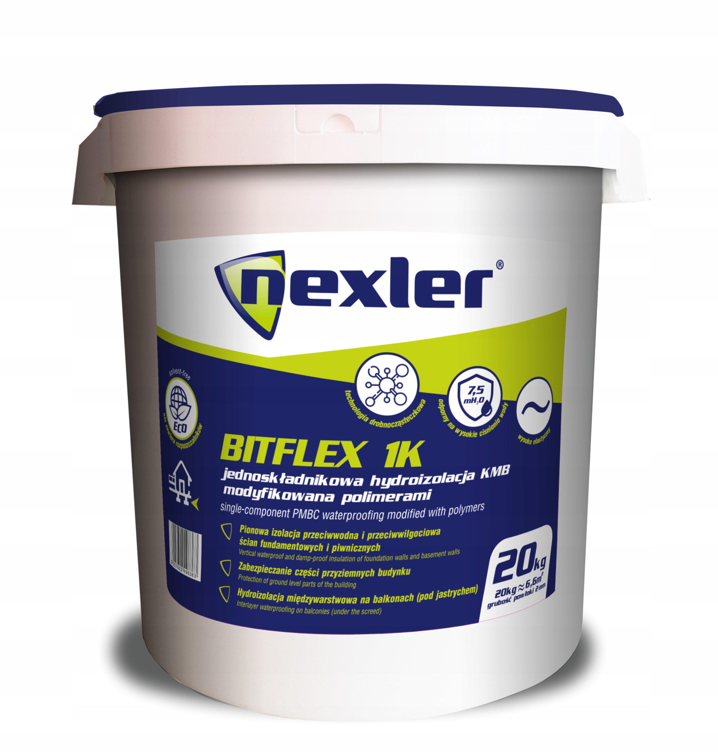 BITFLEX 1K – це товстошарова гідроізоляційна маса (КМБ), модифікована полімерами