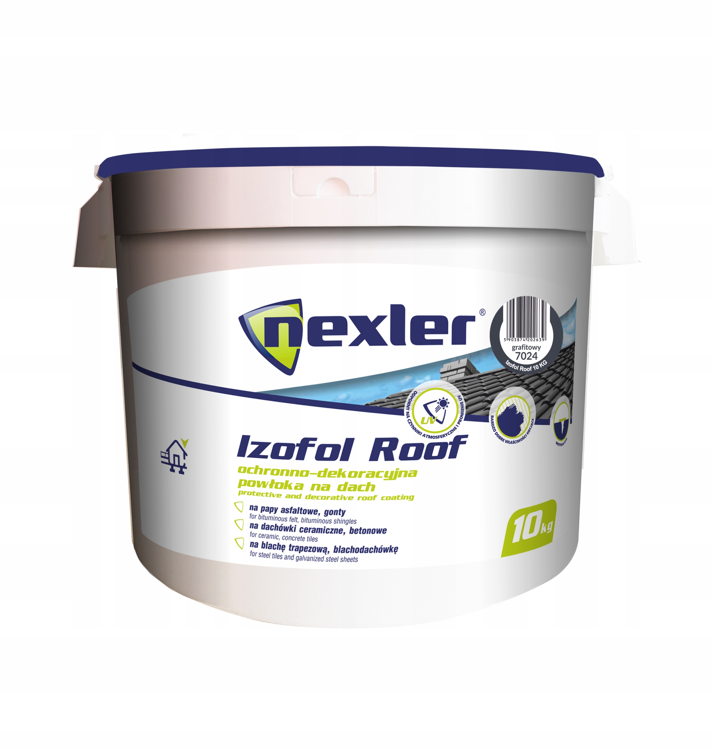 NEXLER IZOFOL ROOF 10KG ЦЕ ЗАХИСНО-ДЕКОРАТИВНЕ ПОКРИТТЯ ДЛЯ ПОКРІВЛІ.
