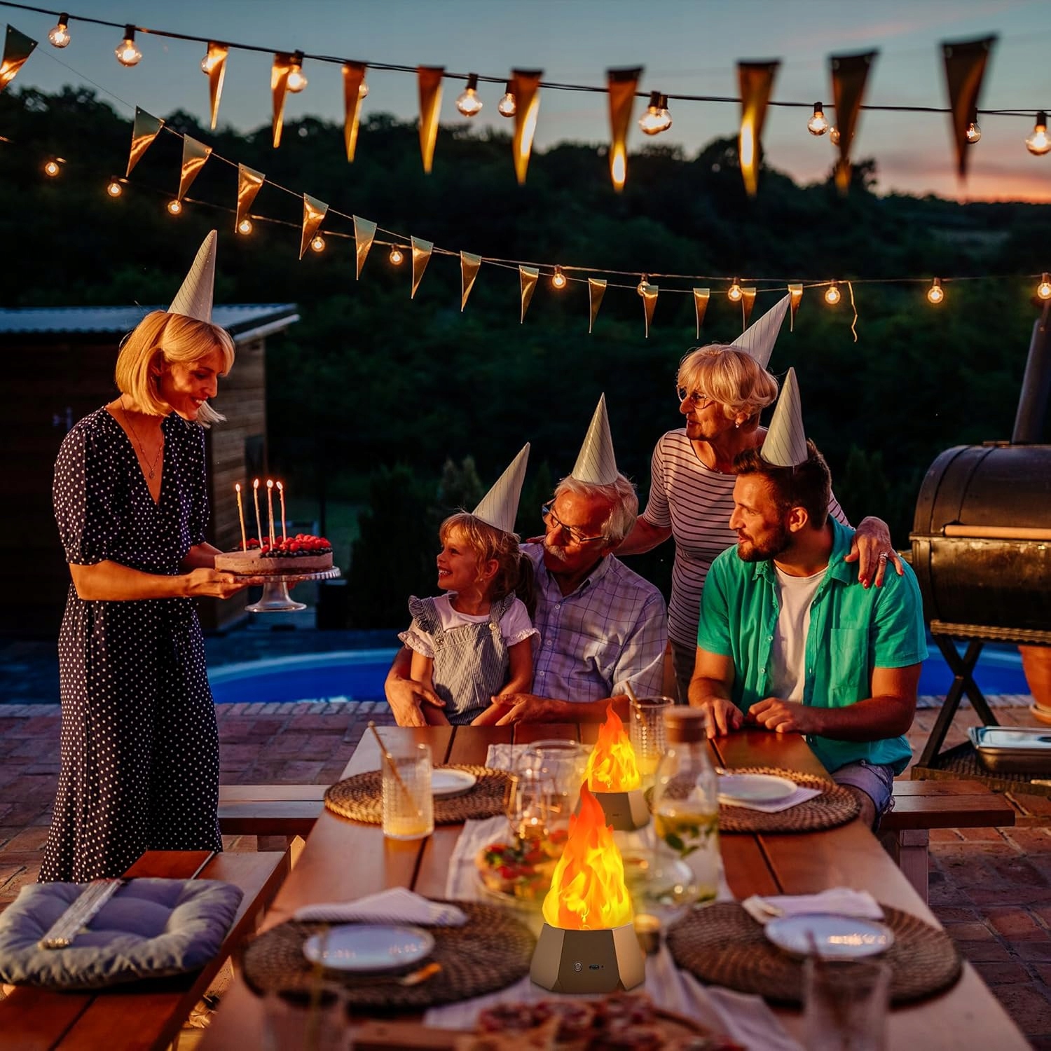 Ця полум'яна лампа пропонує три режими освітлення – постійне, мерехтливе та швидке блимання, що робить її ідеальною як нічник, безполум’яну свічку або навіть як штучну свічку. Він створює затишну атмосферу та підходить для різних випадків, зокрема для прикраси дому, кемпінгу та ресторану.