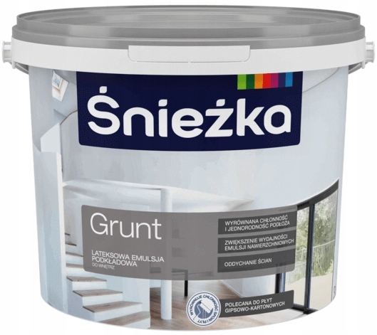 Śnieżka Ґрунтовка, завдяки спеціальним добавкам, наноситься товстим шаром і усуває відмінності у фактурі та кольорі основи. Використання Śnieżka Grunt значно зменшує витрати на фарбування, оскільки одного шару ґрунтовки та одного фінішного шару зазвичай достатньо для досягнення очікуваного ефекту.