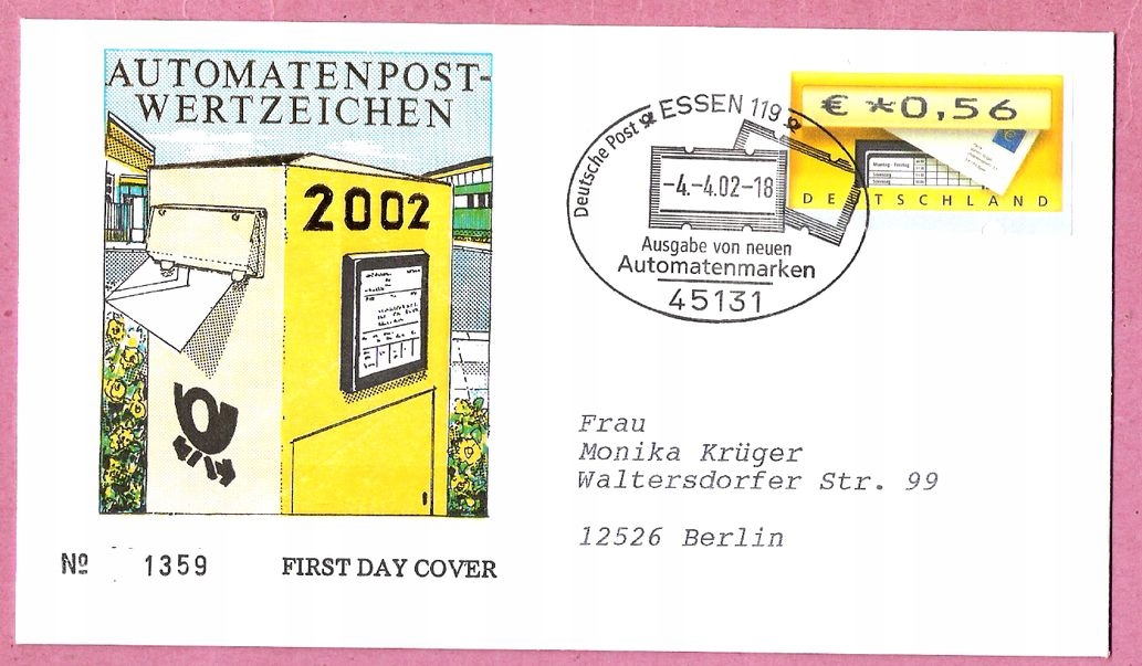 Німеччина 2002 FDC post ATM stamp from the machine, category FDC Mi €5.00