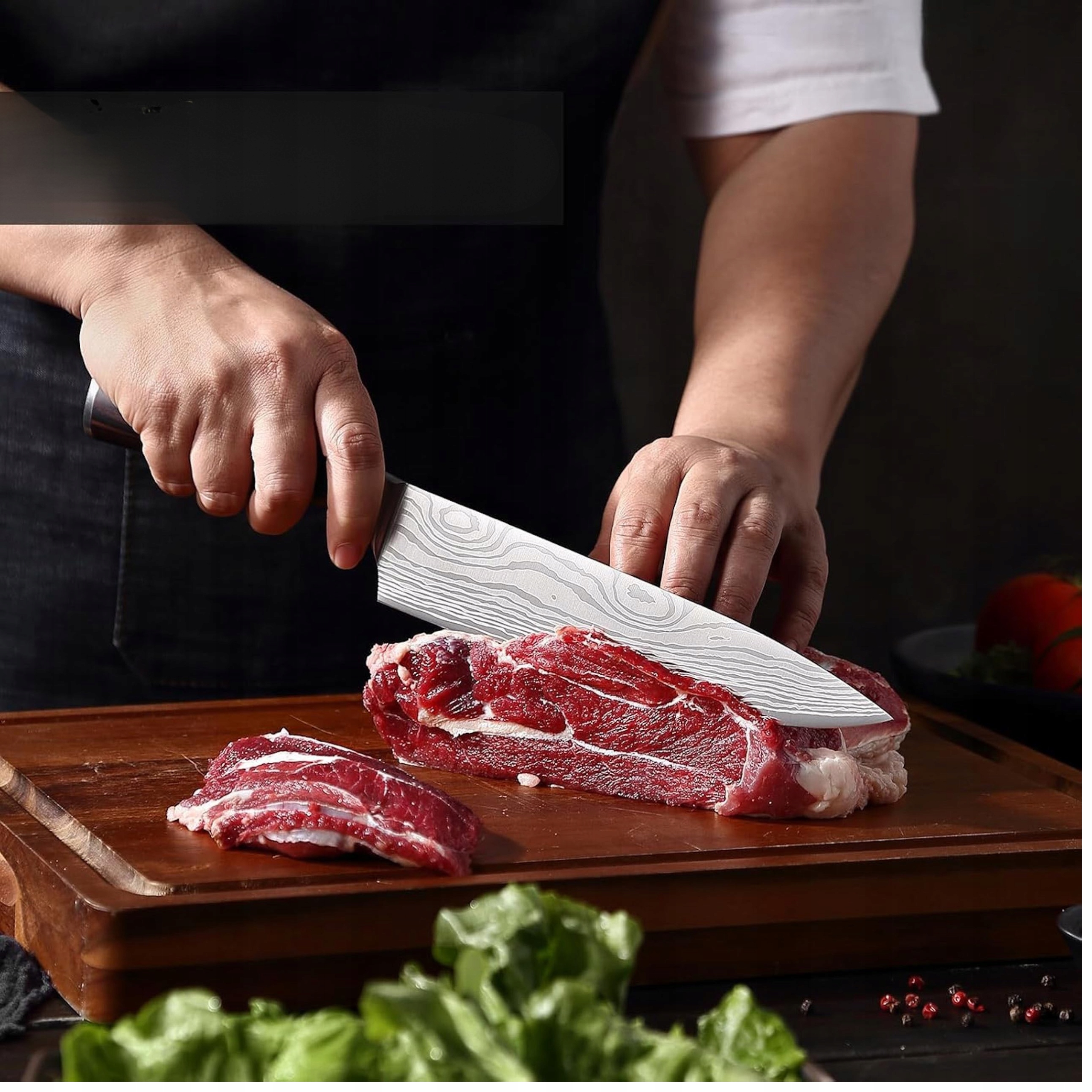 Це надійний кухарський ніж, який ідеально підходить для різання м’яса, овочів, риби та фрукти. У набір входить елегантна коробка, захисний чохол і міні-посібник - усе це створює унікальну ідею подарунка!