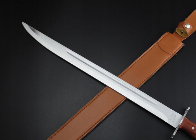 Одна з найдовших моделей цього знаменитого багнета - вона має Конструкція full-tang, виготовлена з одного шматка сталі № 420. Дерев'яна вагонка. На кінці рукояті є механізм, що дозволяє прикріпити до зброї багнет. У комплект входить чохол, який можна носити на поясі.