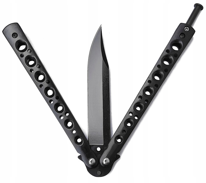 Це сучасна модель ножа з конструкцією легендарного "метелика" довжина - 220 мм. Лезо довжиною 90 мм виготовлено з нержавіючої сталі 440, додатково покрите чорним оксидом.