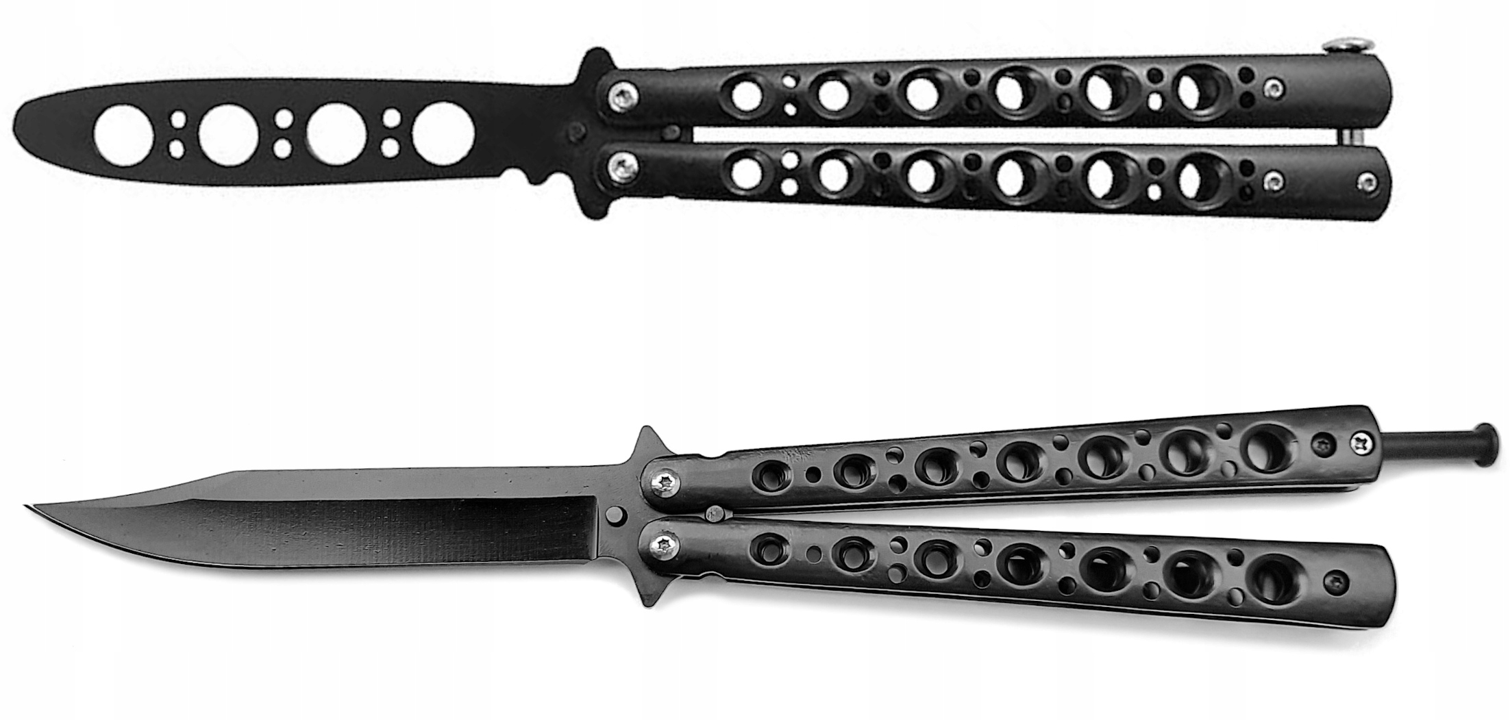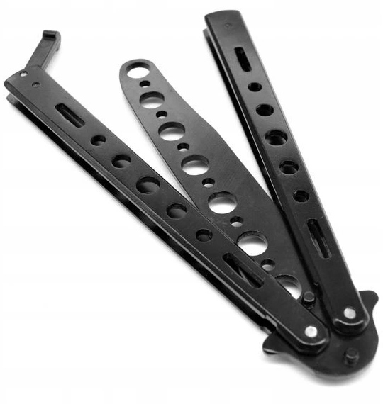 Дресирувальний ніж метелик. Завдяки йому ви можете вдосконалювати свої навички батерфляя, відпрацьовуючи трюки з абсолютно безпечним інструментом з тупим лезом. Має вбудований замок проти відкривання. Легко зібрати.