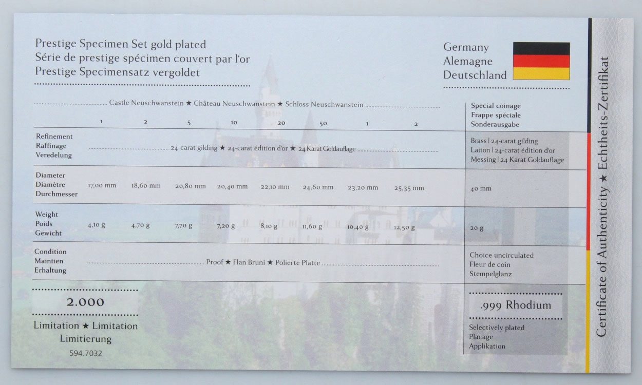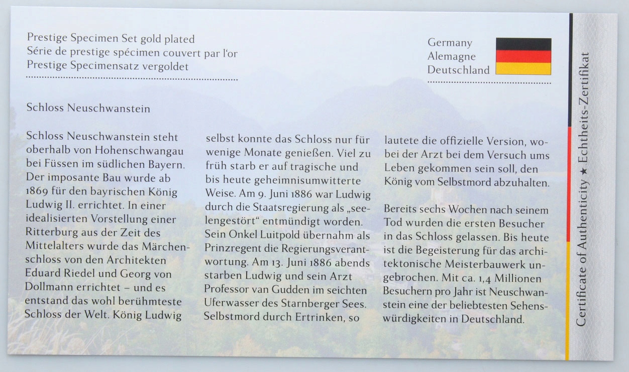 Німеччина - EURO PROOF SET - Баварія - 8 монет - ПОЗОЛОЧЕНЕ пластиком