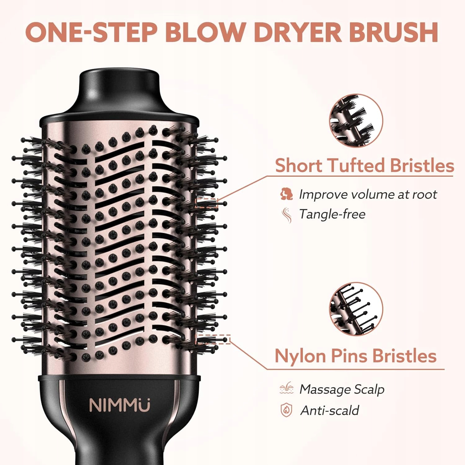 - Розширена керамічна та іонна технологія: наша пензлик для сушіння волосся NIMMU оснащена найсучаснішою керамічною та танічною бочкою та негативною іонною технологією. Ці інновації зберігають вологу, зменшують Frizz і мінімізують пошкодження, спричинені надмірною стилізацією, залишаючи волосся природно блискучими та гладкими.