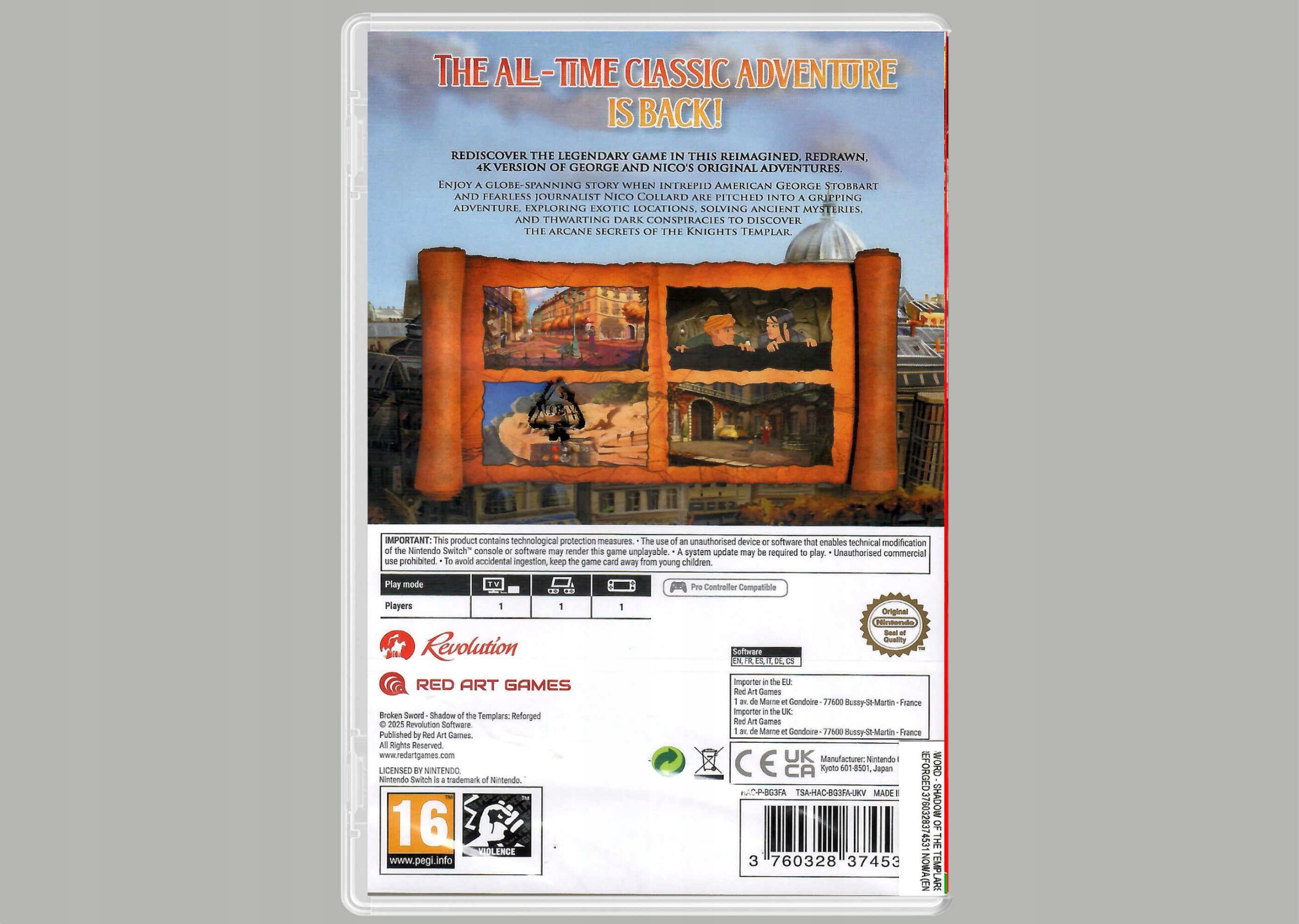 У NINTENDO SWITCH BROKEN SWORD - SHADOW OF THE TEMPLARS: REFORGED ви поринете в захоплюючий світ, де можна розгадувати головоломки та взаємодіяти з навколишнім середовищем. Переплетений сюжет захопить вас з перших моментів, а унікальна система діалогів дозволить формувати розвиток історії. Відкривайте секрети, збирайте підказки і приймайте рішення, які вплинуть на хід подій. Задоволення від гри підкреслюється ретельно продуманим дизайном локацій і деталей, які роблять ігровий світ більш реалістичним. Насолоджуйтесь унікальним досвідом інтерактивної пригоди, де ваші логічні навички та проникливість є ключем до успіху.