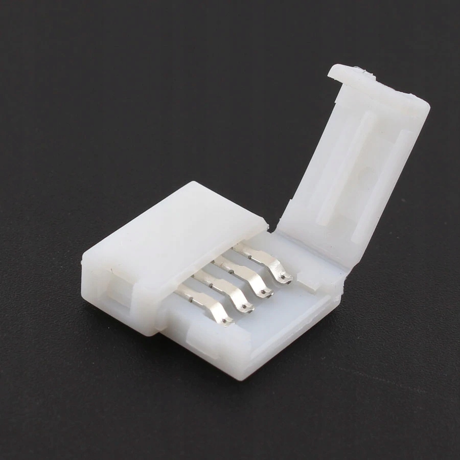 Ручний обжимний роз’єм для світлодіодних стрічок RGB. Він дозволяє швидко з'єднати дві світлодіодні стрічки SMD 5050 шириною 10 мм без використання паяльника. Просто розмістіть стрічку належним чином і закрийте засув. З’єднувачі легко знімаються. Вони багаторазові. Роз’єм можна закріпити на звичайній або водостійкій RGB-стрічці (після зняття силіконової кришки).