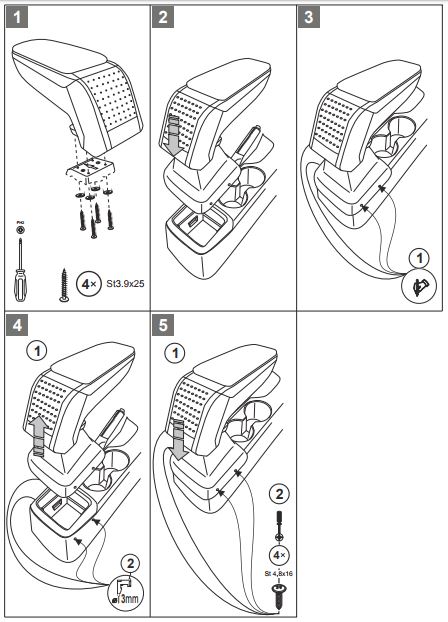 Підлокітники Armster ідеально підходять до салону автомобіля. Підлокітник складається з т.зв «база», тобто верхній елемент, на який спираємося рукою і т.зв «перехідник», який створюється під конкретну модель автомобіля, завдяки чому весь підлокітник виглядає як заводський. Підлокітник прикручується до центрального тунелю, за важелем ручного гальма.