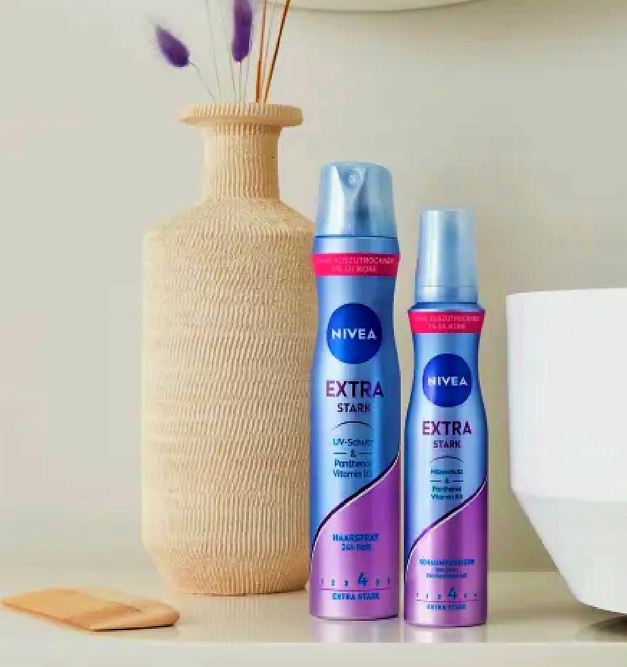 ℹ Завдяки вдосконаленій формулі з пантенолом та вітаміном B3 зміцнює волосся, забезпечуючи зачіску, повну пишності. Забезпечує 24 години гнучкої консолідації. Це захищає їх від високої температури. Вдосконалена формула з пантенолом та вітаміном В3 зміцнюється і захищає волосся. Піна, призначена для звичайного волосся, без блиску, робить зачіску алмазним блиском і гнучкою консолідацією. Піна дбає і зміцнює волосся без блиску. Це захищає їх від високої температури. Завдяки цьому зачіска триває багато годин, волосся залишаються приємними на дотик, не липке і має свіжий вигляд. Також спробуйте іншу косметику для укладання та догляду за волоссям з лінії догляду за глянцею Nivea Diamond. Не забудьте піклуватися про хороший стан волосся, використовуючи засоби догляду, призначені для вашого типу волосся.