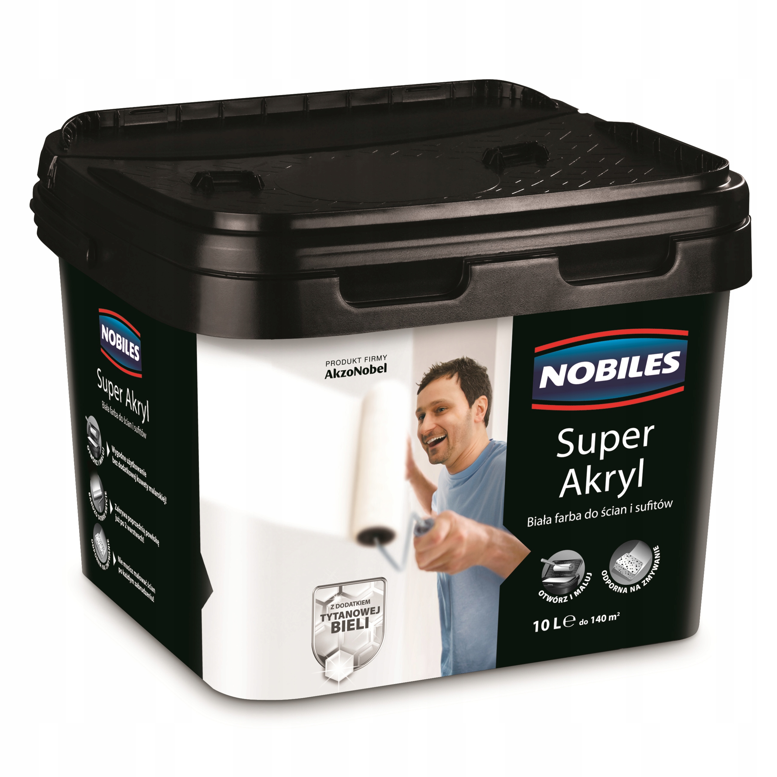 Nobiles супер акрилова біла фарба для стін та стелі 10 л