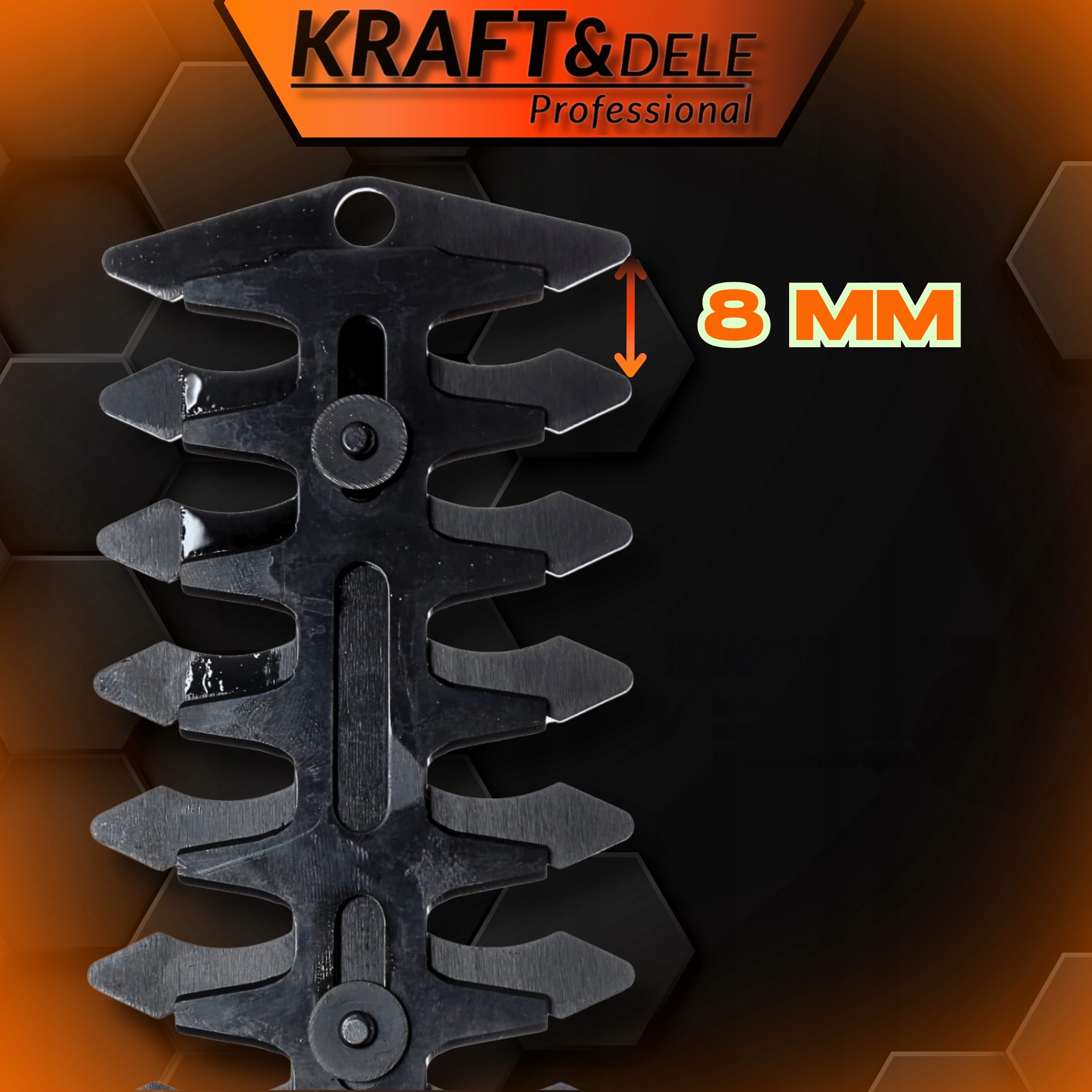 ✔️ Змінні леза шириною 80 мм (кущ) і відстанню між зубцями 8 мм (трава).