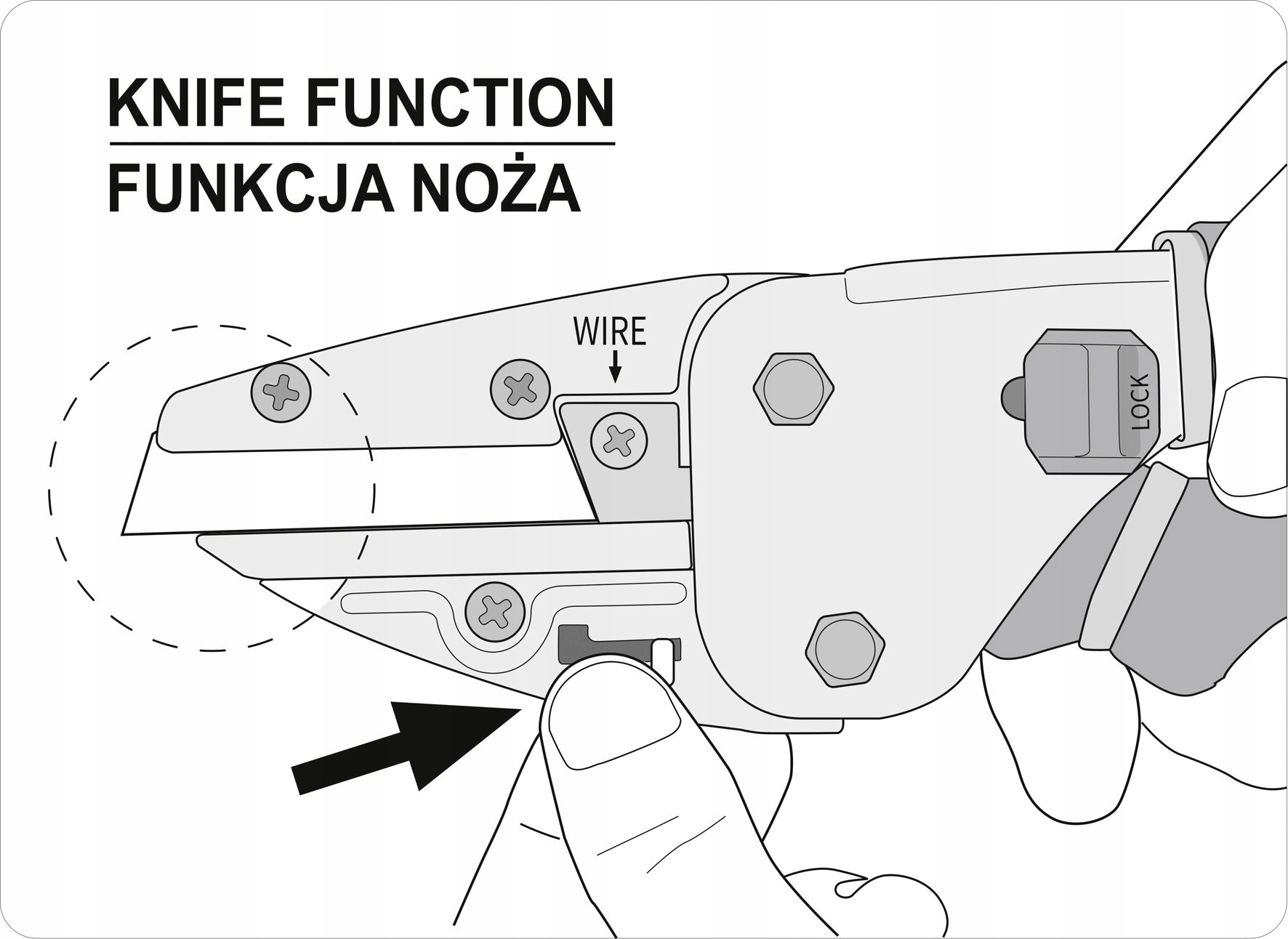 - ефективний фіксатор ковзання леза захищає оператора від випадкових травм