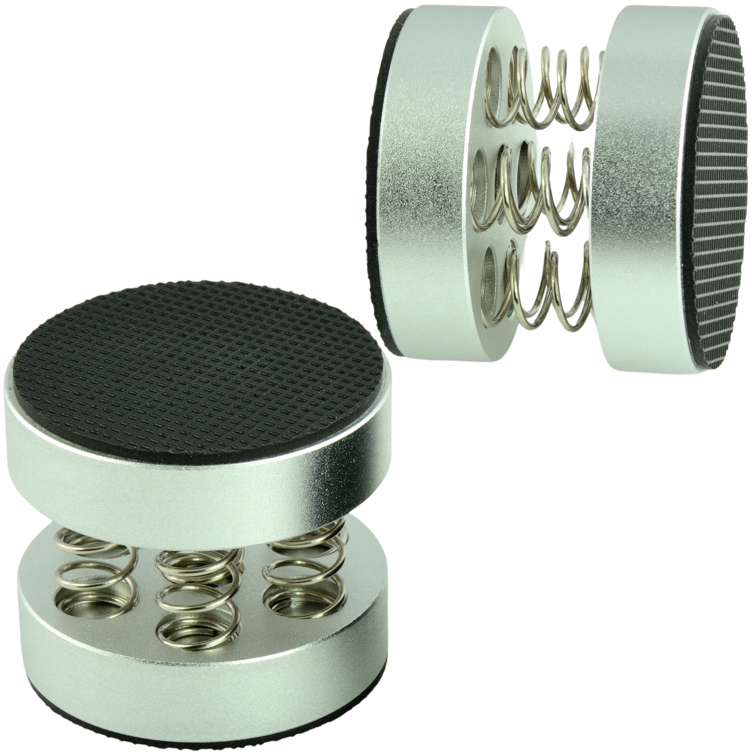 АНТИВІБРАЦІЙНА АУДІОПОДУКЛА НА НІГИ МАТОВЕ СРІБЛО 44X39 ПРУЖИННИЙ АБСОРБЕР