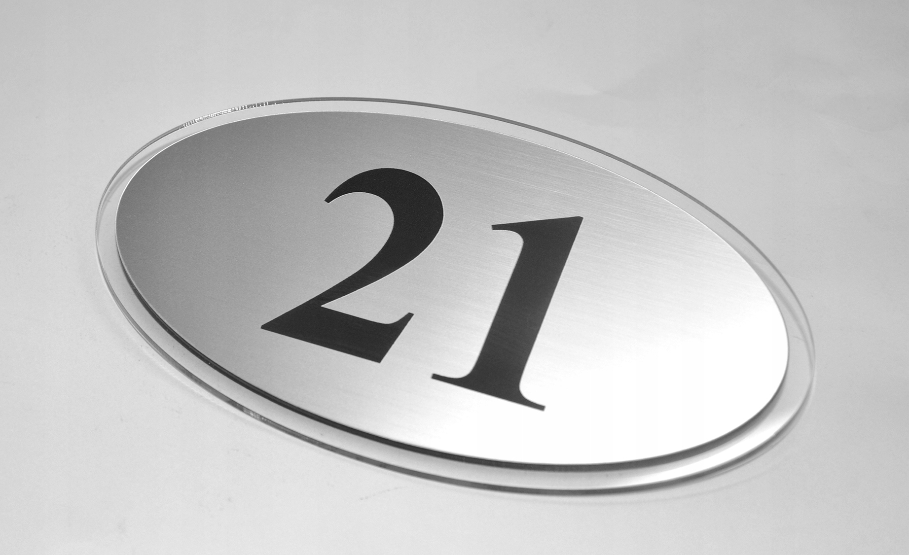 Номер виготовлено за допомогою техніки гравірування та лазерного різання на високоякісному ламінаті для гравіювання товщиною 1,6 мм і високоглянцевому оргсклі.