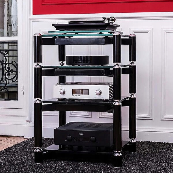 - - black metal bases and thick (15mm) black glass or bamboo shelves with the solution to the vibration damping Buy a constant table size, you can build your own, as you want