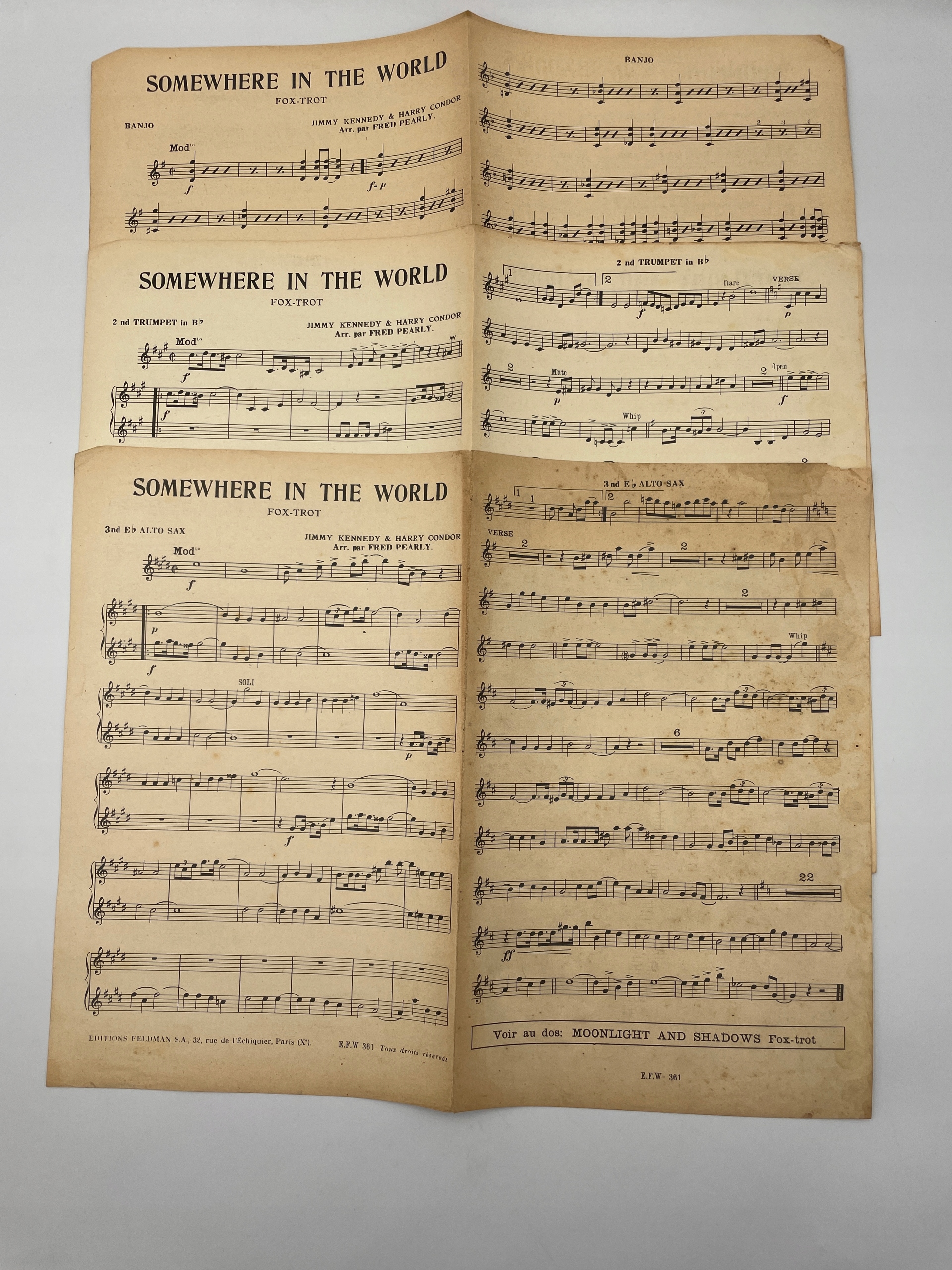 Ноти для оркестру, аранжовані Фредом Перлі, включаючи композиції «Somewhere in the World» (Джиммі Кеннеді та Гаррі Конор) і «Moonlight and Shadows» (Чарльз Денніс та Крістофер Грант). Обидві композиції в стилі фокстрот. Ноти, надруковані на трьох двосторонніх картках. Видавець: Editions Feldman S.A., Париж.