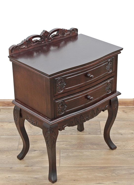 Чарівний предмет меблів із двома ящиками та красивим різьбленням.