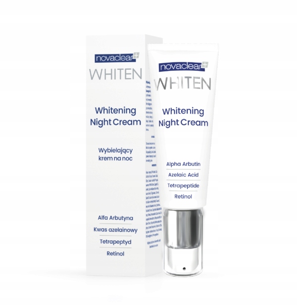 Нічний відбілюючий крем для обличчя з активним альфа-арбутином, азелаїновою кислотою та тетрапептидом для освітлення змін кольору різного походження (сонячного, гормонального, вікового). Крем має сильні депігментуючі, протизапальні та антиакне властивості. Уповільнює процес утворення меланіну і старіння шкіри. Мінімізує плями та веснянки, вирівнює тон шкіри. Стабільна форма ретинолу додатково посилює дію крему проти зморшок.