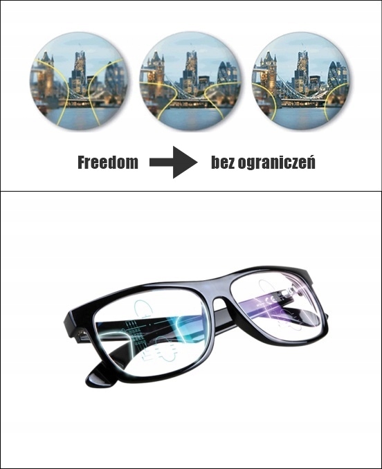 Пропоновані прогресивні лінзи є останнім поколінням які використовують найсучасніші технології. Він має оптимізовану, найширшу та вільну від спотворень зону далекого, середнього та ближнього зору. Завдяки використанню внутрішнього каналу прогресії (FreeForm) вона розташована ближче до ока, що значно збільшує поле зору та забезпечує оптимальну стабільність зображення у всіх зонах зору. Цей тип лінз забезпечує дуже короткий час спонтанної адаптації.