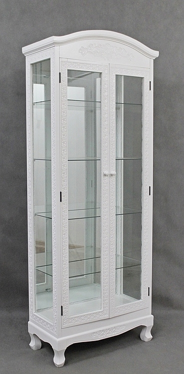 Чарівний предмет меблів зі скляними полицями та красивим різьбленням.