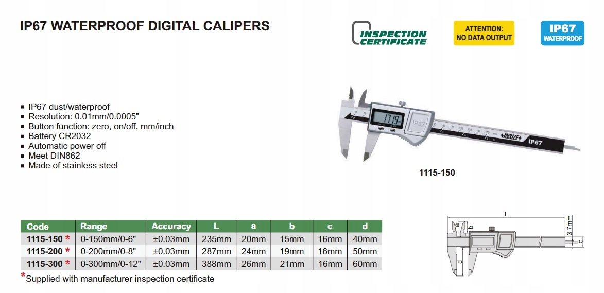 НОВИЙ металевий штангенциркуль з IP67 від Insize 1115-150