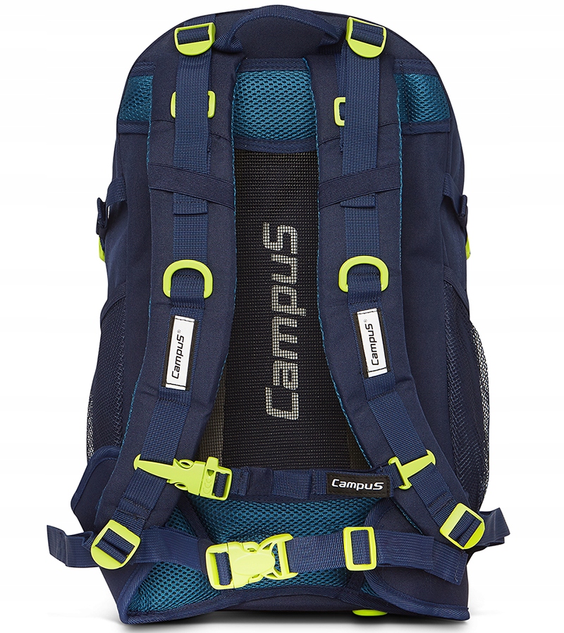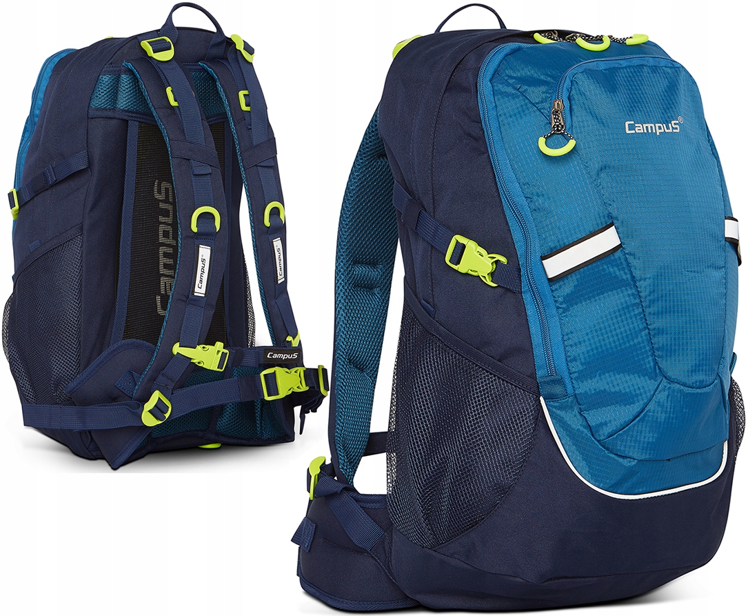 Якісний трекінговий рюкзак - city - school HORTON 2 by CAMPUS об'ємом 30 л. , виготовлений із міцного та легкого матеріалу ENDURA POLYESTER-RIPSTOP. Ідеально підходить для школи, поїздок і повсякденного використання. Він призначений для вимогливих користувачів, які цінують комфорт і практичні рішення. Рюкзак має два просторих відділення та передню кишеню з практичним органайзером та застібкою для ключів, усі застібаються на блискавку. Збоку рюкзака є сітчасті кишені, призначені для носіння, наприклад, пляшки з водою. Крім того, рюкзак має ручку для перенесення, регульовані плечові лямки з набивкою та компресійні лямки. Світловідбиваючі елементи, розміщені спереду та на плечових лямках рюкзака, забезпечують кращу видимість користувача та, отже, більшу безпеку. Максимальний комфорт використання забезпечує система перенесення AIR FLOW разом із системою вентиляції спини ACS. Дві спеціально сконструйовані подушки, що проходять уздовж хребта, з’єднані сіткою, створюючи тунель, що забезпечує циркуляцію повітря та охолодження спини. Система лямок дозволяє регулювати нахил рюкзака відносно тіла в залежності від умов використання. Система джгутів і подушок, а також ергономічний стегновий ремінь забезпечують рівномірний розподіл ваги і захищають хребет і м'язи шиї від тиску. Використання високоякісного матеріалу ENDURA POLYESTER-RIPSTOP гарантує захист від механічних пошкоджень і захищає від складних погодних умов.