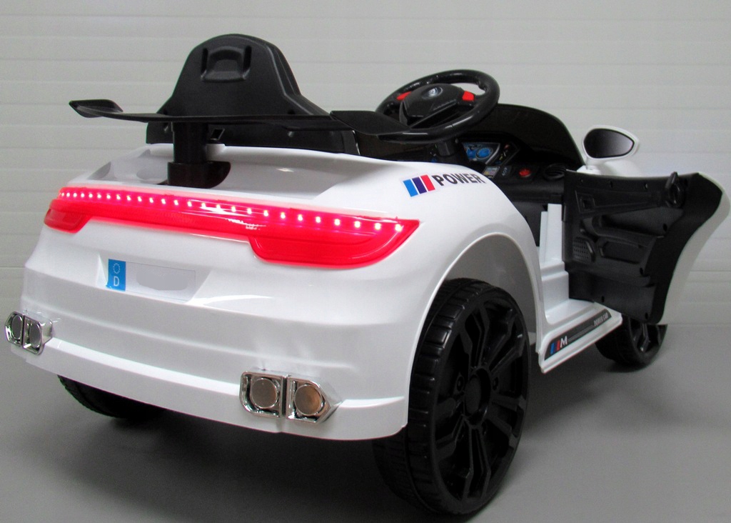 Привабливий автомобіль із акумуляторним живленням із чистим спортивним виглядом і дверима, що відкриваються. Автомобіль має численні нікельовані елементи та обтічні форми, що підкреслюють спортивний характер автомобіля. Керувати машиною можна за допомогою пульта дистанційного керування, а також дитиною, яка сидить в машині. Транспортний засіб призначений для дітей віком від 12 місяців до 4 років. Максимально допустиме навантаження 30 кг.