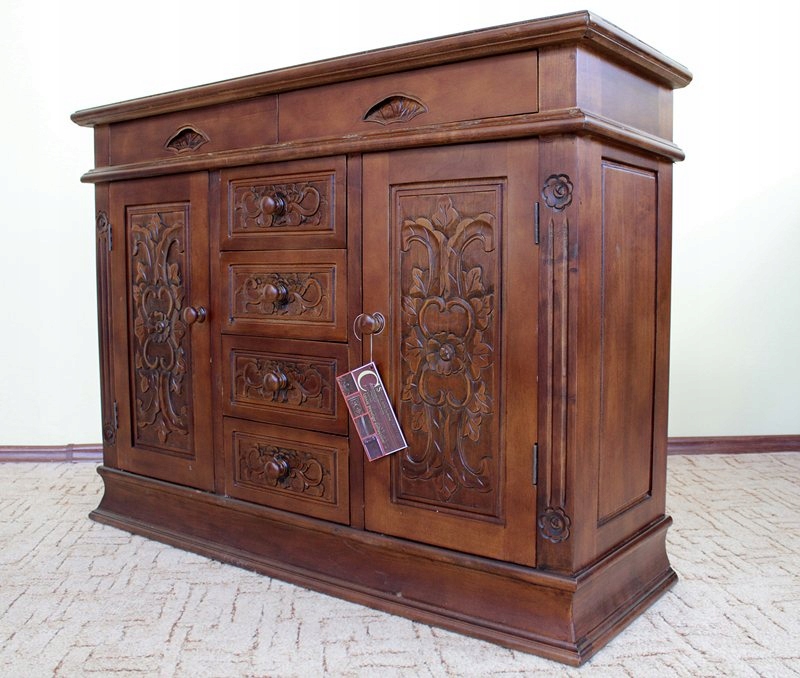 Чарівний предмет меблів із шістьма ящиками та чудовим різьбленням.