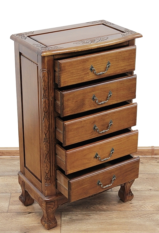 Чарівний предмет меблів із п'ятьма ящиками та красивим різьбленням.