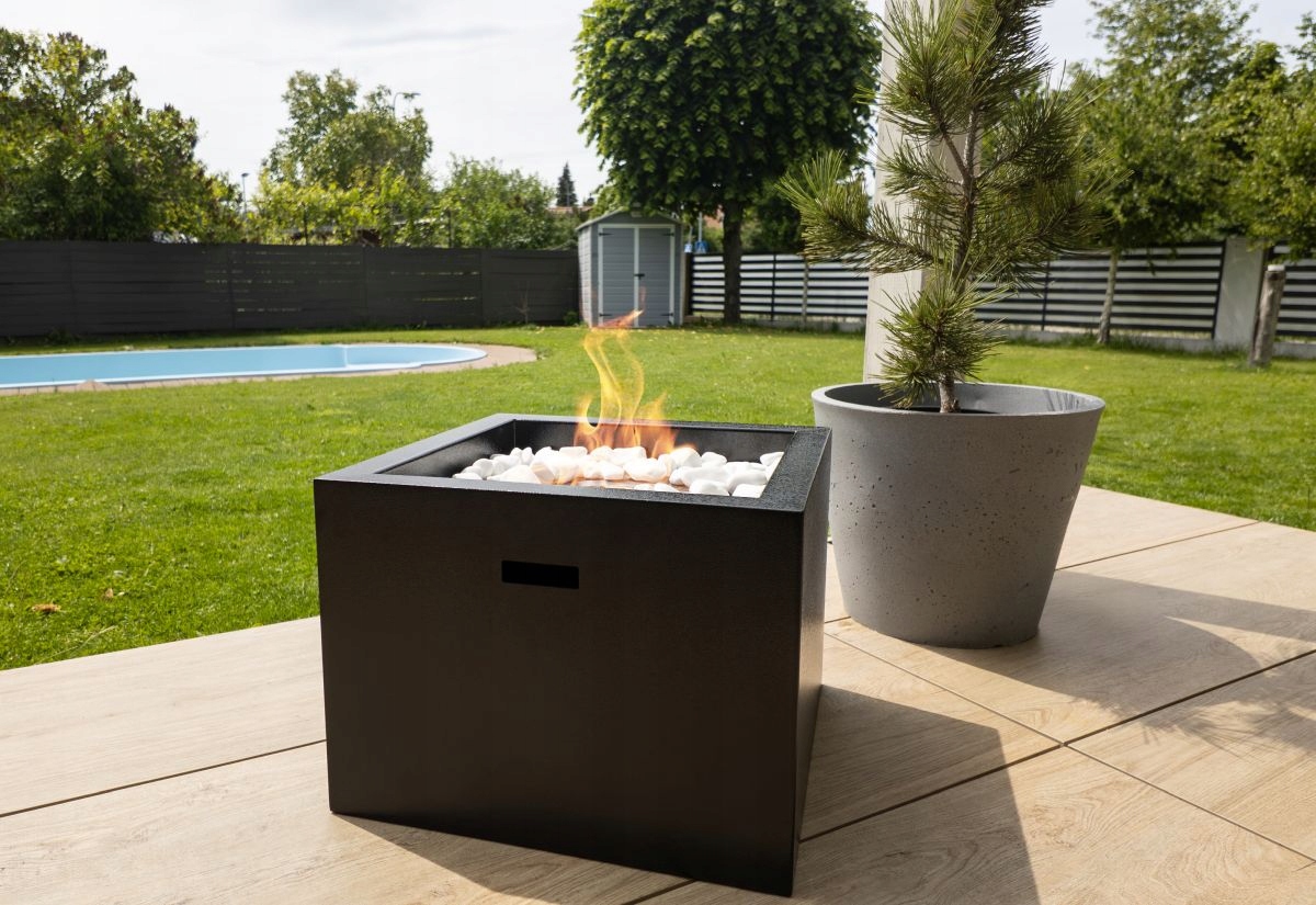 Біо -камін, виготовлений із шведської порошкової сталі з чорною конструкційною матричною фарбою.