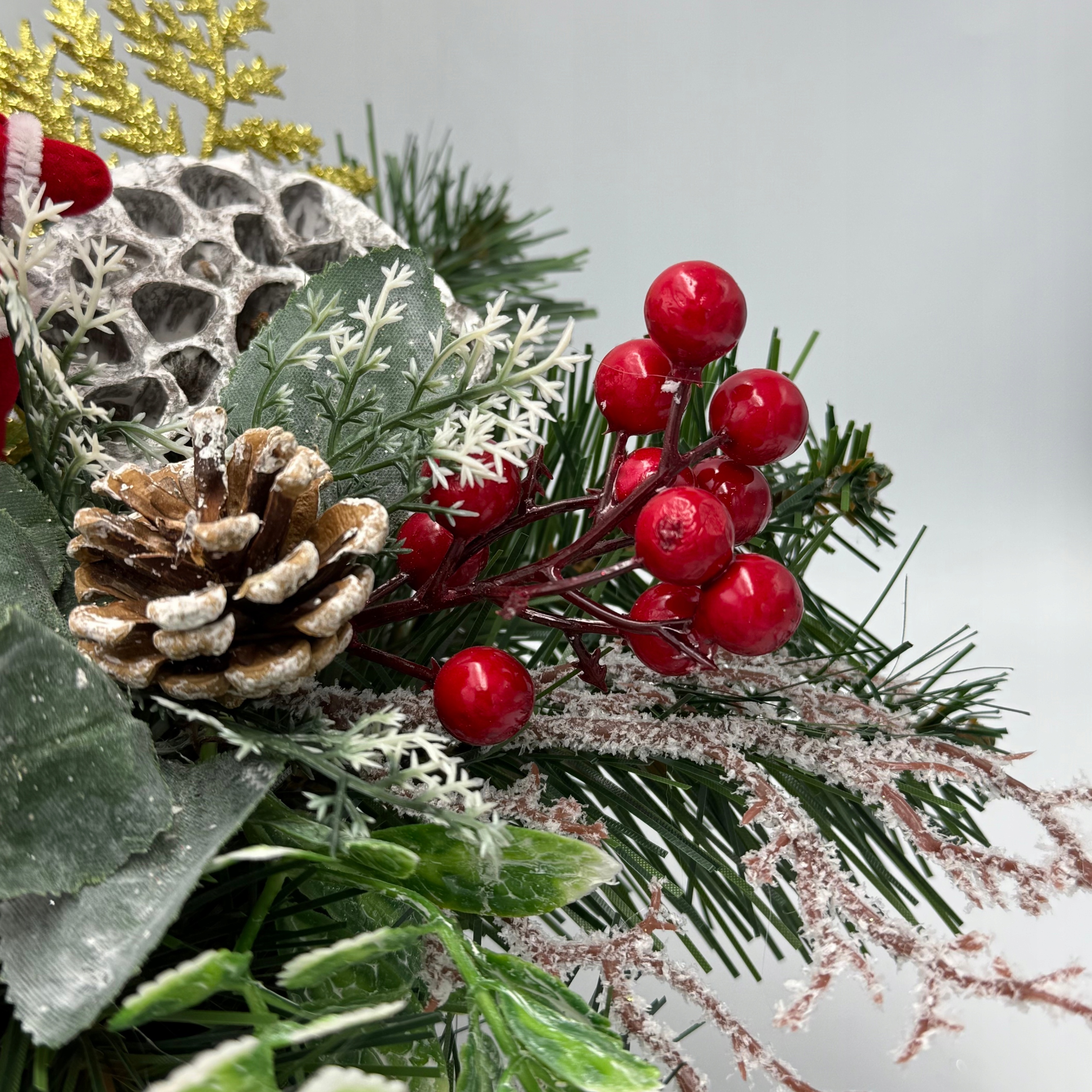 Новорічна прикраса Різдвяний вінок на столі Червоний і золотий із Санта-Клаусом