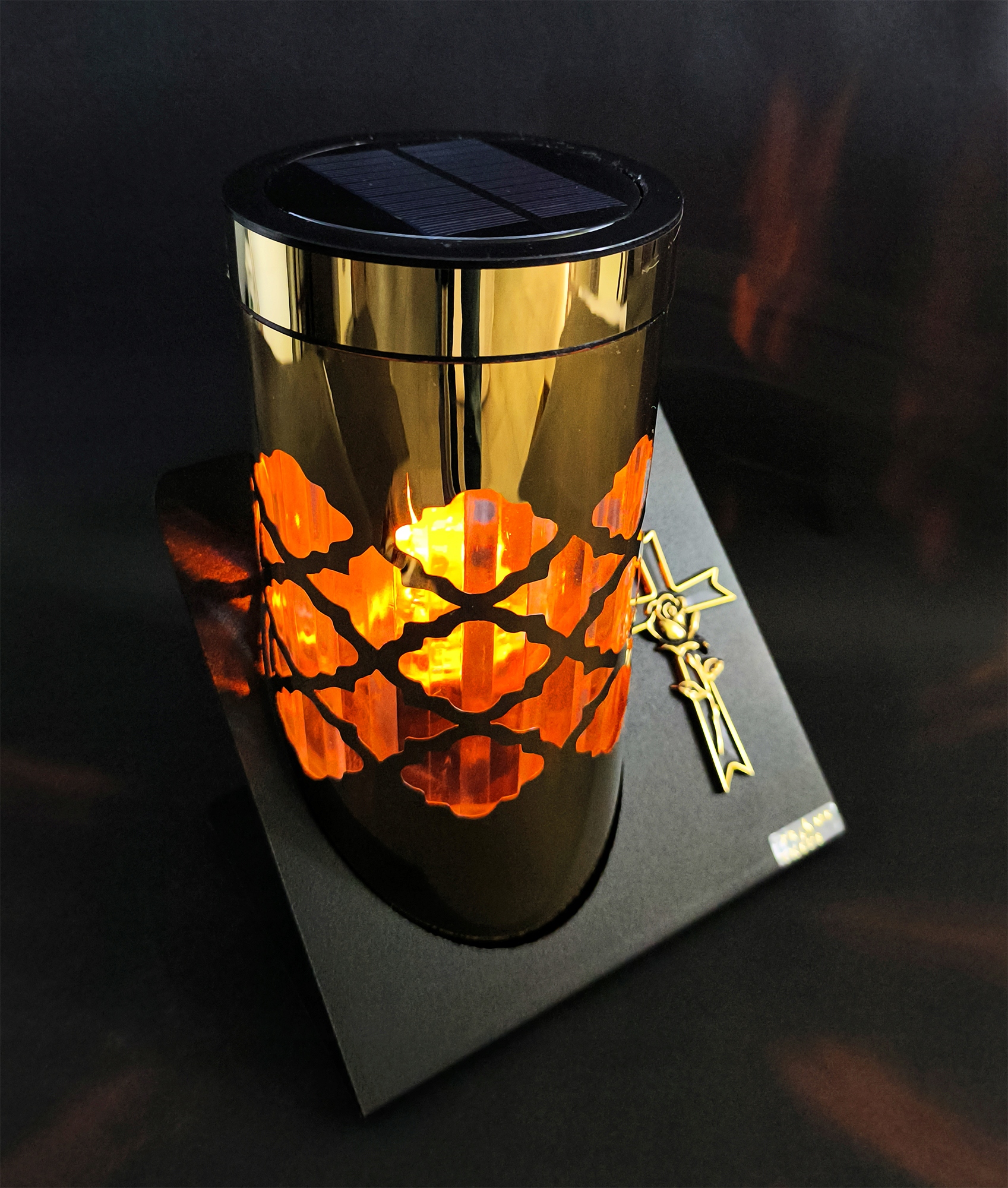 Nowoczesny znicz solarny ze stali lampion fotowoltaiczny efekt płomienia